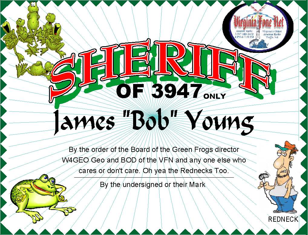 VFN T Shirts: K4TTZ Danny N4USS Todd KV4QE Glenn K4JDJ Bob KE4RMB Frank N4WDC David NX4Q Jim N3ZE Henry K3WRY Dr Joe W3ELE Tony K4HYE Les W4CKP Deryl W3SEG Scott N8KUK Larry N8TMF Lee KD4WWF Pat KJ4EIW Robert K4VWK Scott |
